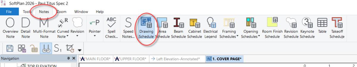 I am setting up a cover page. I would like a page number index based on the Plan Set.